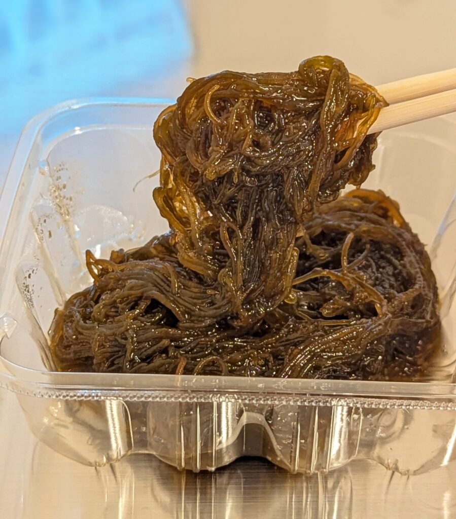 一番よく見かけるのは 「もずく酢」。小さなカップに入っていて、そのまま食べられる便利な形。